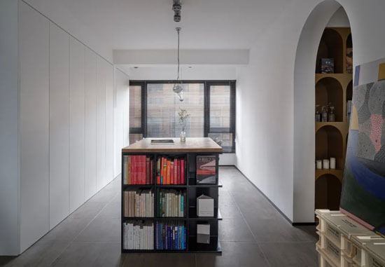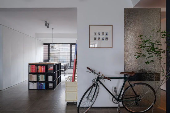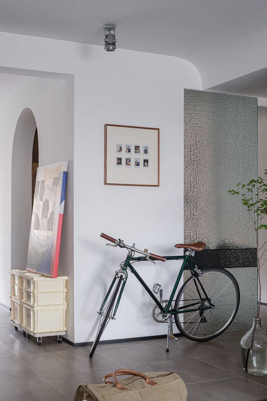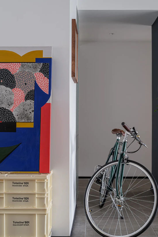 將自行車放置在此的同時,書房另一側的過道也可以滿足進入衛生間及臥室的需求。