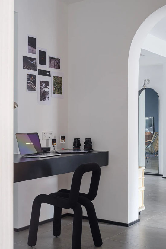 書房的墻面貼上了屋主的照片,空間充滿了生活氣息。