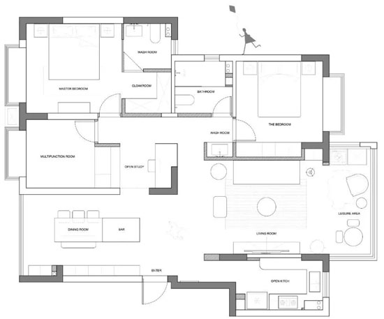 以書房為中心的回字形動線布局,在提供靈活自由的動線的同時,也給屋主的愛好預留了更多搭配組合的空間。