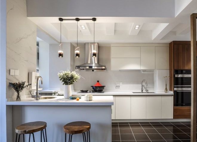 因為開放式廚房和客餐廳的地面相連,如果這部分漏水,很容易影響到客餐廳,在開放式廚房范圍內(nèi)做好全地面防水。除此之外,地面也應(yīng)選擇防水效果更好的地磚。