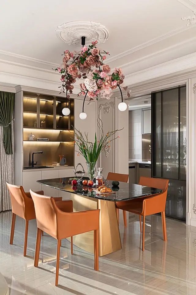 在餐廳的設計細節(jié)方面,主要還是根據(jù)餐廳的空間來搭配餐桌,餐椅。與此同時也要合理的利用客廳的空間,在本案中餐廳的設計是比較合理的,而且通過個性化的裝飾,讓餐廳的布局變得更加的漂亮。