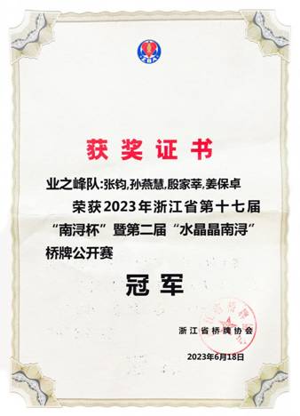 業之峰隊榮獲第十七屆“南潯杯”橋牌公開賽冠軍