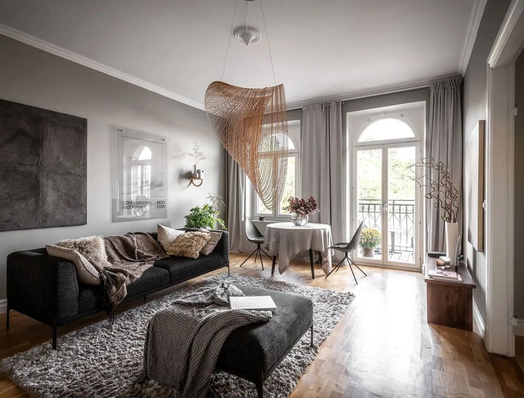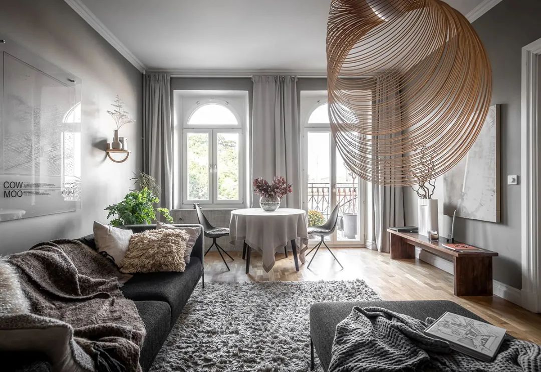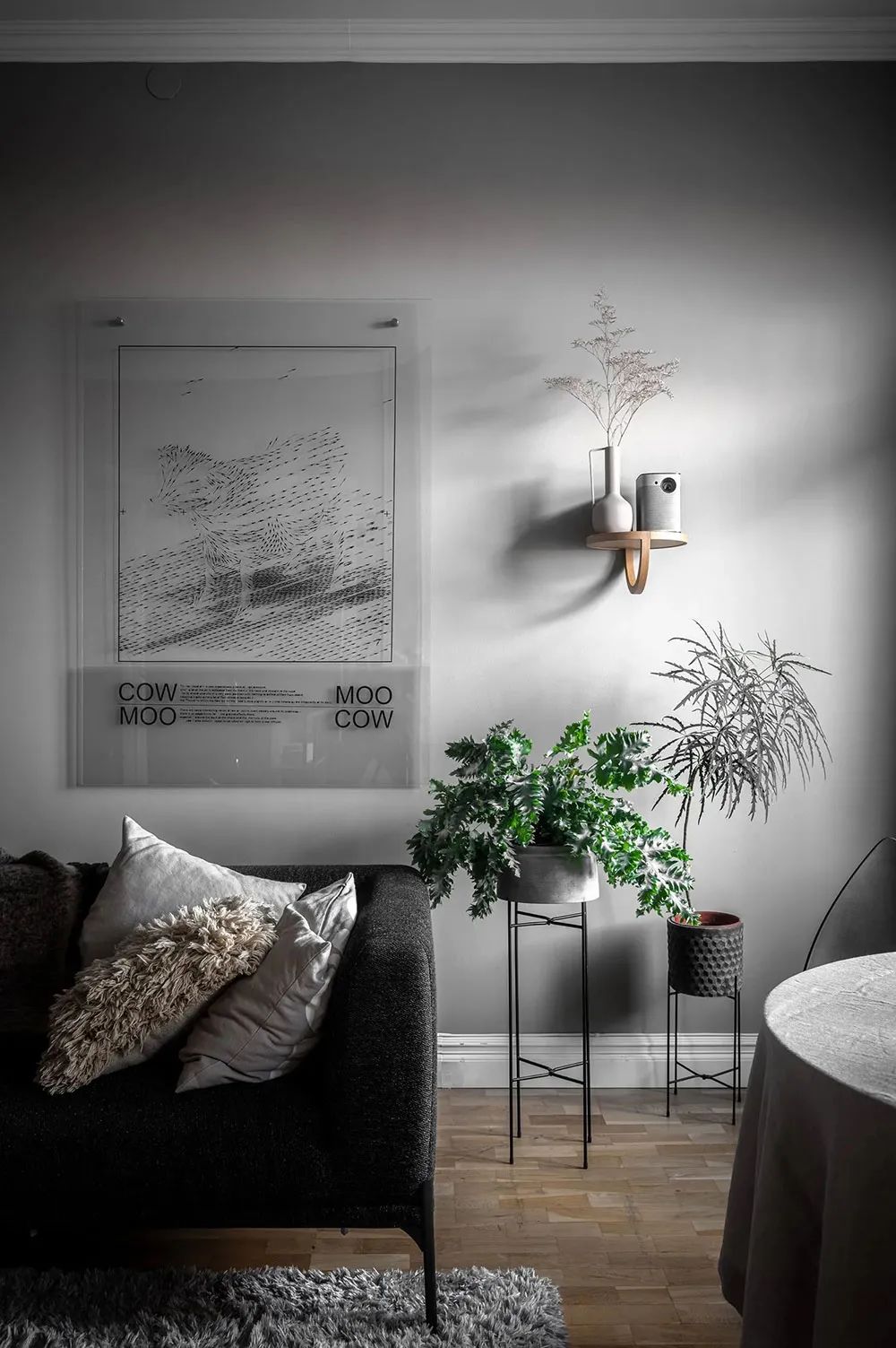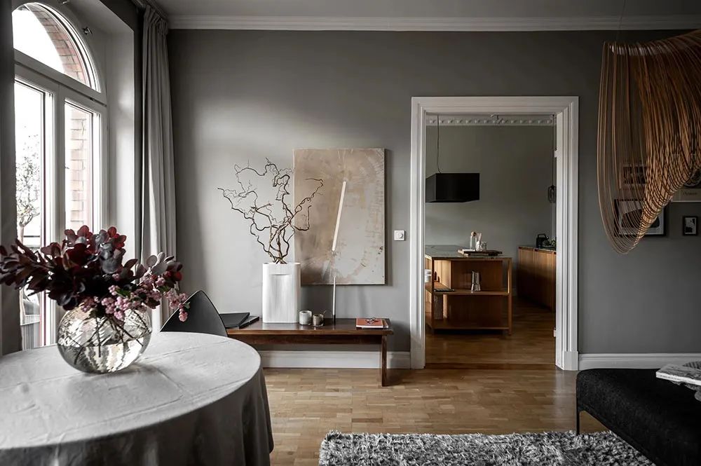 這間位于斯德哥爾摩的公寓是灰色時尚內(nèi)飾和不尋常裝飾的典范。幾件富有表現(xiàn)力的藝術(shù)品作為主要點綴,將單調(diào)的空間變成了值得設(shè)計的空間,而天然木材的細節(jié)則增添了溫暖、舒適的觸感。