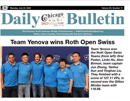 2023年7月,業之峰橋牌隊在芝加哥榮獲北美頂級大賽冠軍