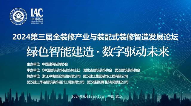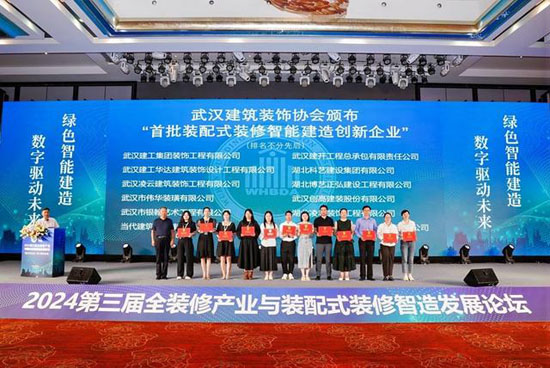 6月14日,由中國建筑裝飾協(xié)會(huì)主辦,《中國建筑裝飾裝修》雜志社、湖北省建筑裝飾協(xié)會(huì)、武漢建筑裝飾協(xié)會(huì)承辦,浙江中南建設(shè)集團(tuán)有限公司、武漢建工集團(tuán)裝飾工程有限公司、武漢建工華達(dá)建筑裝飾設(shè)計(jì)工程有限公司、武漢佳碧源科技有限責(zé)任公司協(xié)辦的2024第三屆全裝修產(chǎn)業(yè)與裝配式裝修智造發(fā)展論壇在武漢舉行。